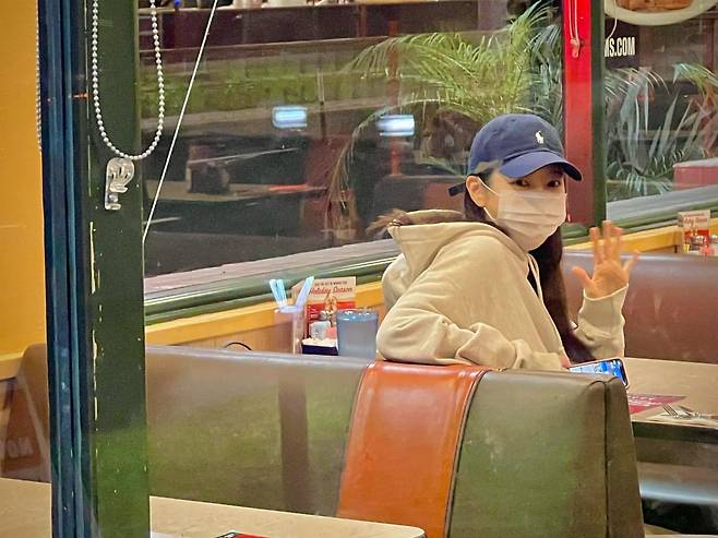 레스토랑에서 포착된 나혜미의 일상적인 모습이 시선을 사로잡는다. 베이지 컬러의 후드 티셔츠에 네이비 캡 모자와 마스크를 매치해 편안하면서도 스타일리시한 데일리 룩을 선보이고 있다. 손을 들어 인사하는 친근한 제스처가 배우의 자연스러운 매력을 드러낸다. 특히 팬데믹 시대를 반영한 마스크 착용과 캐주얼한 스타일링이 현실적인 셀러브리티의 일상 패션을 보여주며, 편안함과 스타일을 동시에 추구하는 현대적 감각을 엿볼 수 있다.