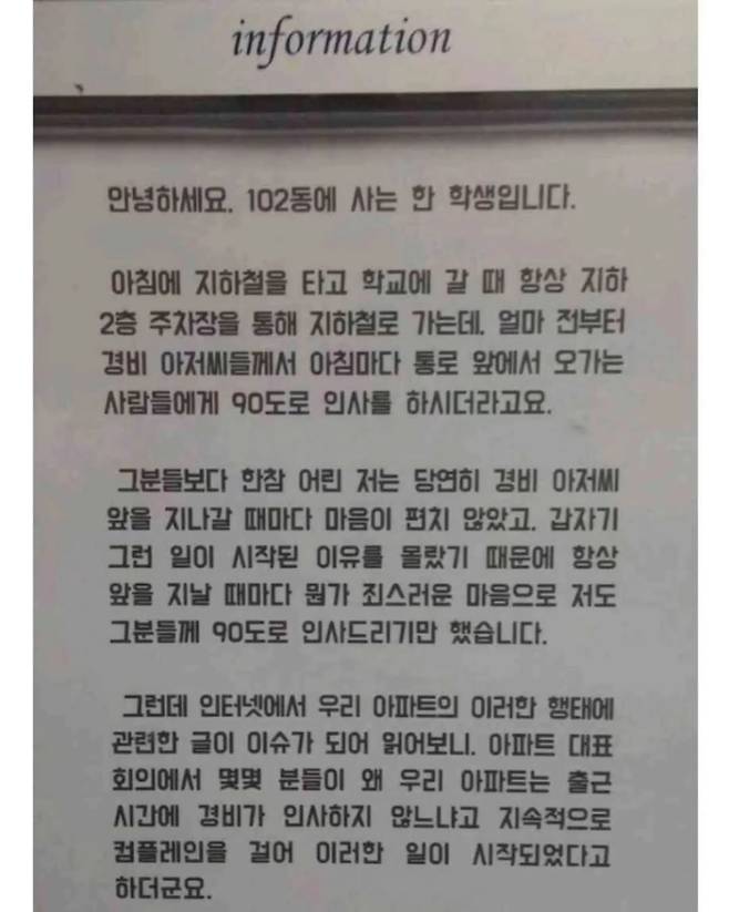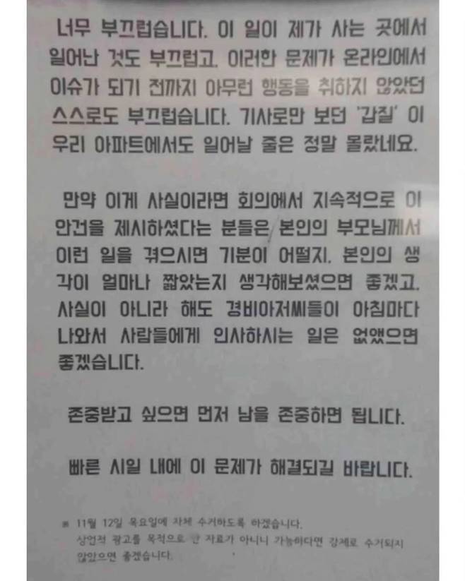 한 고등학생이 아파트 게시판에 붙이 대자보 ㄷㄷ