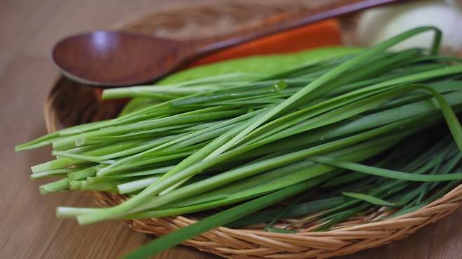 부추는 손가락 한마디에서 한마디 반 정도 크기로 썰어 주세요.