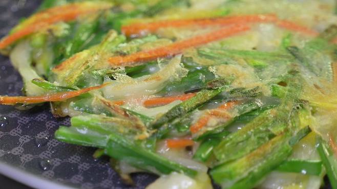 부추전에는 여러 가지 야채가 들어가서 건강에도 좋고 아이들 간식에도 정말 좋은 것 같아요! 물론 술안주로도 정말 제격이에요.