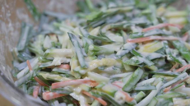다시 섞어 주시면 반죽이 아주 맛있게 돼요! 간도 골고루 배어 맛이 좋답니다!