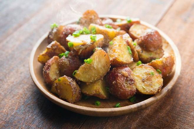 옛날 통닭처럼 옛날 통감자는 언제 먹어도 진리입니다. 작고 동그란 알감자를 기름에 튀겨 짭짤하게 소금 간을 한 통감자는 별다른 재료 없이도 깊은 맛을 냅니다. 겉은 바삭하고 속은 포슬포슬한 식감이 일품이죠.