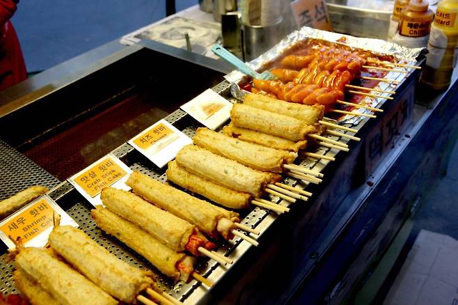 그냥 먹어도 맛있고, 칠리나 케첩 등 소스를 뿌려 먹어도 좋은 핫바는 냄새부터 남다른 간식입니다. 뜨겁게 튀겨낸 핫바는 어묵 반죽의 쫄깃한 식감과 짭짤한 맛이 일품이죠.