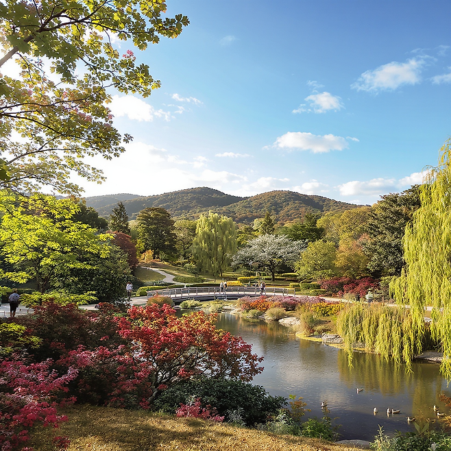 가을 (9~11월): 단풍이 아름답게 물들어 절경을 이룹니다. 특히 10월 중순부터 11월 초가 단풍의 절정 시기입니다. 쾌적한 날씨 덕분에 산책하기 가장 좋은 계절입니다.