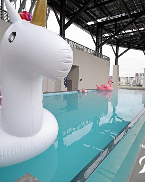 인피니티풀은 물의 경계가 보이지 않게 만든 수영장으로 주로 고급진 호텔 등에서 찾아볼 수 있는 시설이지만, 대전 한화생명 볼파크에서 세계 최초로 야구장에 인피니티 풀을 도입했습니다.