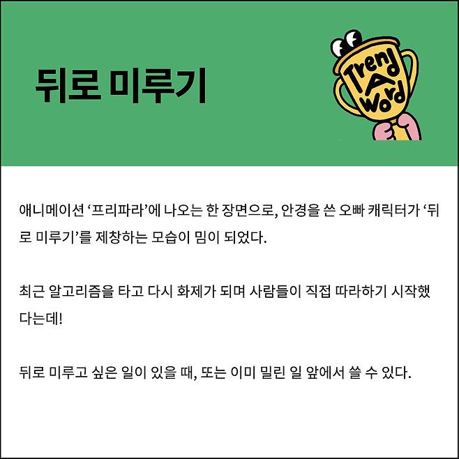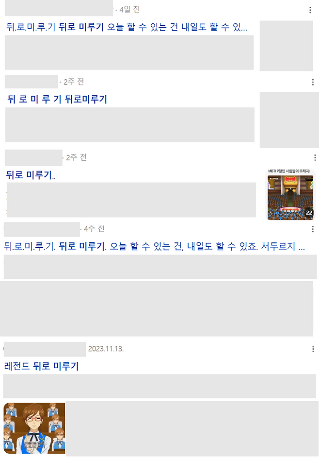 이제는 ‘미루기’의 대표 밈/짤 자리를