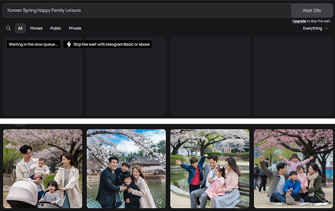 실제 Ideogram을 사용해본 결과, 입력한 텍스트가 선명하게 표현되어 이전에 경험했던 다른 AI 이미지 생성기보다 훨씬 높은 만족도를 제공했다. 다만, 아직 한글 텍스트는 제대로 지원하지 않아 한국 사용자에게는 일부 제약이 있다. 한글 지원이 추가된다면 활용도는 더욱 높아질 것으로 예상된다.