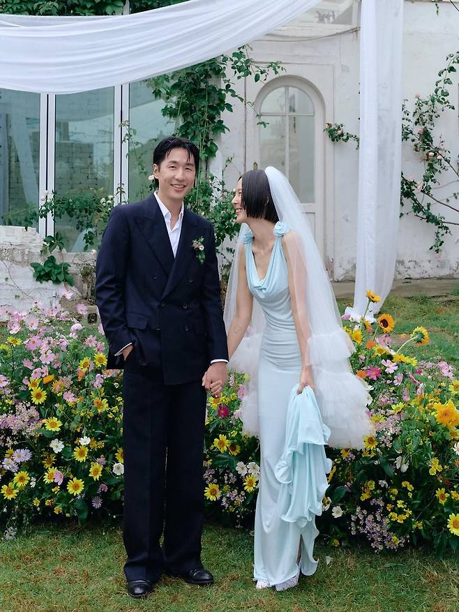 하늘색 드레스가 “나만의 결혼식”이라는 개성과 자유로움을 드러냈다면,
