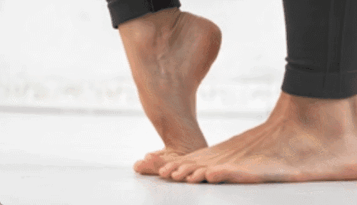 바닥에 다리를 모은 채 서서 시작합니다. 왼쪽 발꿈치를 들어 올렸다가 내리는 동시에, 오른쪽 발꿈치를 들어 올립니다. 좌우 발꿈치를 번갈아 들어 올리는 동작을 균형을 유지하며 반복합니다.