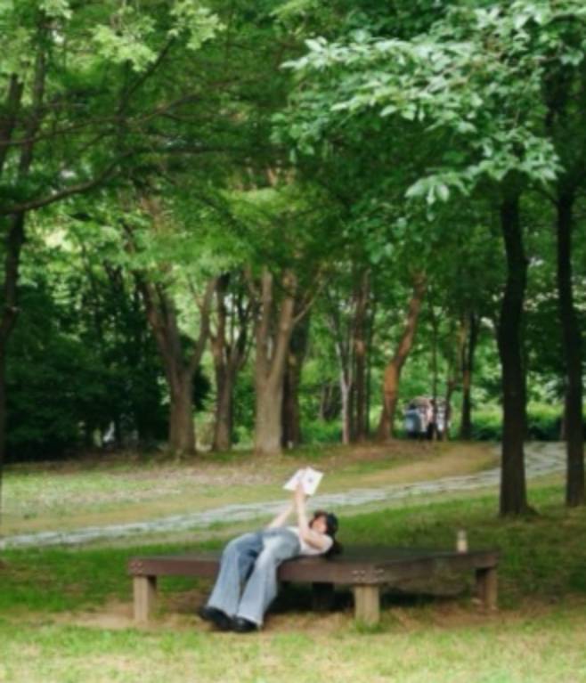이번 착장은 특히 자연 속에서의 일상과 지적인 분위기가 자연스럽게 어우러지며, 그녀 특유의 청순하고 단정한 이미지를 극대화하는 스타일이죠.