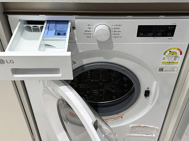 세제통이 있던 자리도 닦아준 다음, 부속품을 다시 세탁기에 결합하자. 이제 세탁기의 남은 물기가 마를 수 있도록 잠깐 열어두면 세탁기 청소는 끝났다.