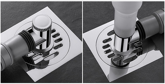 머리카락이나 이물질을 걸러내는 하수구망과 하단 배수관으로 구성되어 물이 넘치거나 역류하는 것을 방지하고, 실리콘 트랩은 물이 흐를 때만 열려 악취와 벌레를 막아준다.