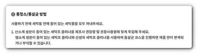 세탁기 청소 순서 (출처 : 살림교실)