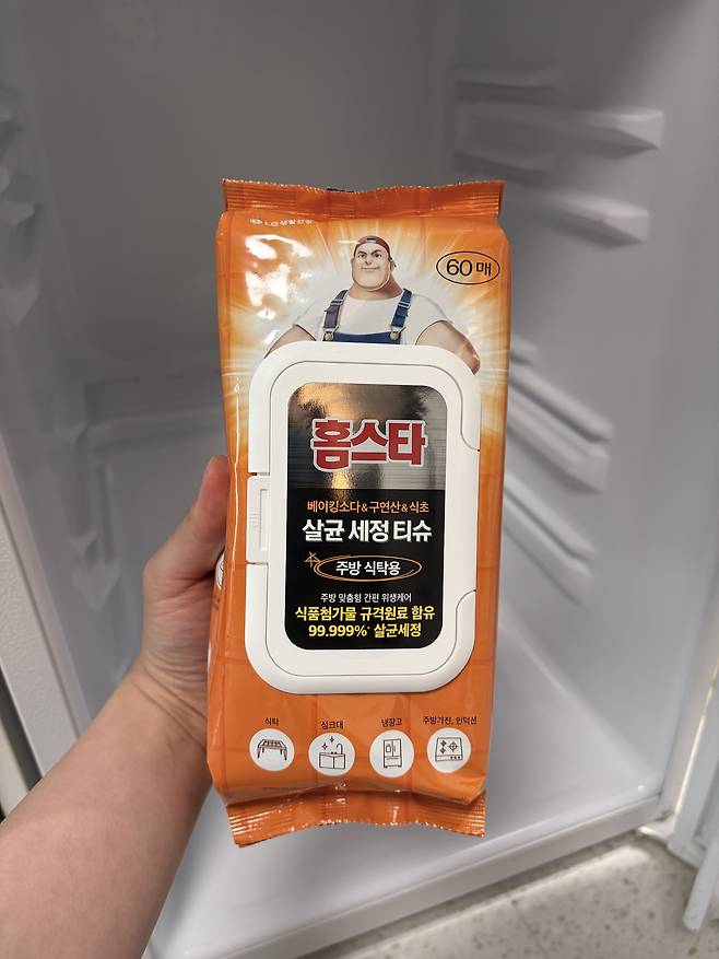 간편하게 해결하고 싶다면 기획자가 쓴 제품처럼 베이킹 소다, 구연산, 식초 모두 함유되어 살균과 세정 한 번에 가능한 기능성 티슈를 쓰면 된다.