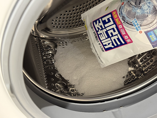 필자 집에 있던 제품은 표준 코스로 돌리라고 표기되어 있어 한 팩을 전부 넣고 표준 코스로 돌려주었다. 만약, 세탁조 클리너가 없다면 과탄산소다를 종이컵 두 컵 정도 부어 통세척/통살균 해주면 된다.