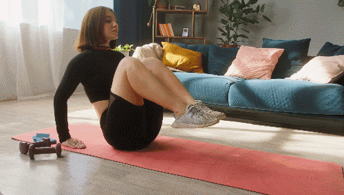 매트에 엉덩이를 대고 앉아 다리를 뻗고, 손으로 바닥을 짚어 상체를 지탱합니다. 상체를 세우며 무릎을 가슴 쪽으로 당겼다가, 상체를 살짝 눕히며 다리를 곧게 펴줍니다.
