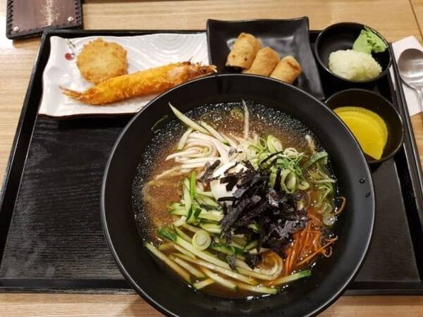 토핑으로는 오이, 파, 김 외에도 직접 만든 메밀전병을 곁들여 독특한 식감을 즐길 수 있습니다.