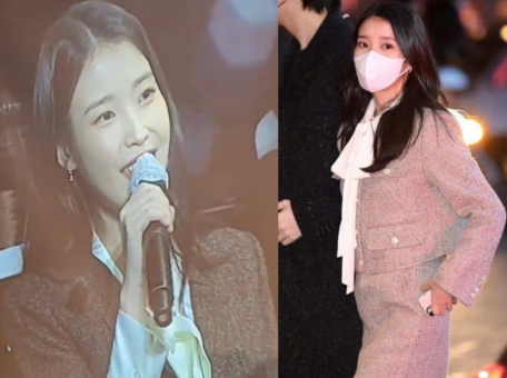 아이유는 찐친 티아라 지연의 결혼식에서도 리본 블라우스를 활용한 하객룩을 선보였다. 트위드 크롭 자켓과 스커트 셋업으로 밝고 단아한 하객룩 완성.