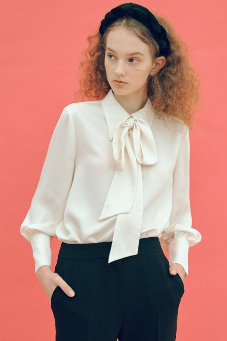 아이유가 착용한 리본 블라우스는 디어케이 제품으로 가격은 11만원대. 촤르르 흐르는 폴리 소재의 리본 블라우스로 로맨틱하고 여성스러운 디자인이 특징이다.