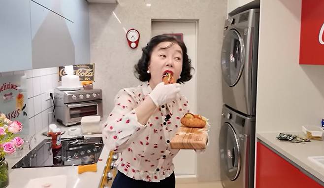 최화정이 운영 중인 유튜브에는 '천재 먹짱 최화정이 1분 만에 만든 추억의 사라다빵'이라는 제목이 영상이 공개돼 있다. 영상에서는 1분 만에 만들 수 있는 초간단 요리를 소개하고 있다.