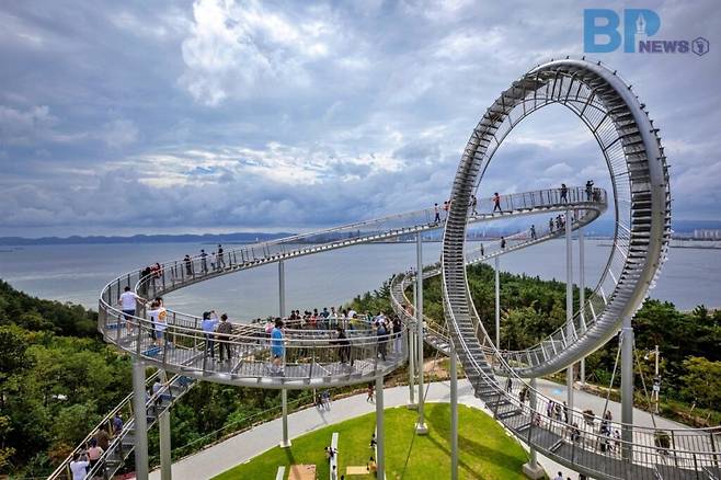 트랙 길이 333m, 계단 개수 717개로 이루어진 이곳은 실제로 철제 트랙 위를 걸으며 포항의 전경을 감상하는 이색 체험이 가능하다.