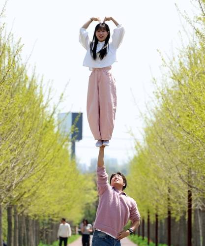 벚꽃이 흐드러진 어느 봄날, 공원을 지나던 시민들이 눈을 의심하게 만드는 장면이 펼쳐졌다. 평범한 연인처럼 보였던 두 사람이 갑자기 환상의 퍼포먼스를 선보인 것이다. 여성은 순식간에 남성의 손바닥 위로 올라서 균형을 잡고, 여유롭게 셀카까지 찍는다. 마치 영화 속 장면 같은 이 퍼포먼스는 알고 보면 치어리딩 국가대표 출신 문은비와 연인 오태윤이 연습과 열정으로 만들어낸 결과다.