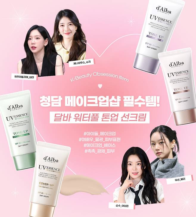 그리고 청담 메이크업샵에서만 쓰이는 게 아니라 실제 연예인들도 직접 달바 워터풀 톤업 선크림을 픽해서 쓴다는 거야!