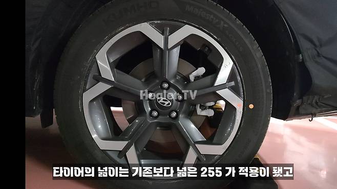 새로운 휠에는 255/50R20 타이어가 적용됐다. 기존 팰리세이드의 245/50R20보다 타이어 폭이 10mm 더 넓어졌다. 이를 통해 차량 안정성과 노면 그립력 향상이 기대된다.