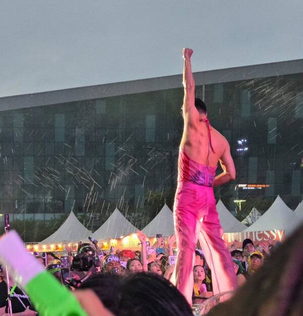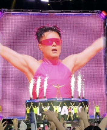 박진영은 지난 7월 4일부터 6일까지 경기도 고양시 킨텍스 야외 글로벌 스테이지에서 열린 '워터밤 서울 2025'에 출연해 강렬한 인상을 남겼다. 이날 그는 자신의 트레이드마크인 파격적인 시스루 의상 대신 핫핑크색 홀터넥과 비닐 바지를 착용하고 무대에 올랐다.