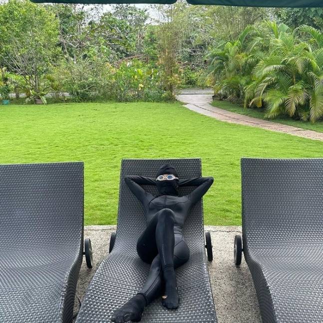 배우 이세희의 자외선 차단은 ‘진심’ 그 이상이다. 여배우들이 수영복 패션을 뽐내는 가운데, 그녀는 해녀복을 연상케 하는 ‘완전무장 수영복’으로 시선을 사로잡았다. 얼굴은 검은 두건으로 완벽히 가리고, 수경을 쓴 눈만 내놓은 모습은 그야말로 ‘자외선 회피 장인’. 여기에 배영을 하며 웃음 섞인 영상까지 올리며 “즐거우셨다니 다행”라는 코멘트를 남겼다. 팬들은 물론 동료 연예인들까지 당황스러우면서도 재미있다는 반응을 보이며 유쾌한 웃음을 지었다. 수풀에 숨은 모습, 바닥에 드러누운 모습까지 웃음을 잃지 않는 태도가 바로 이세희의 매력 포인트 아닐까.