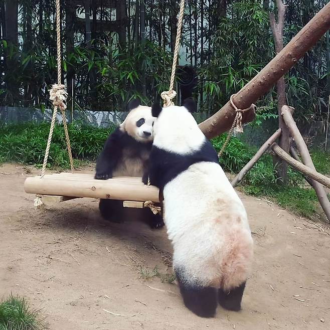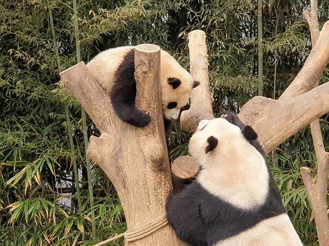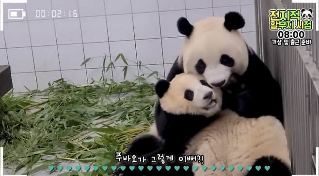 지금도 어린 딸 루이바오와 후이바오를 너무나도 사랑하는 아이바오. 그런 아이바오는 눈에 넣어도 아프지 않을 첫 딸 푸바오를 애지중지 키워 왔습니다. 혹여나 다칠까, 품에 안고서 금이야 옥이야 사랑해 주었죠.