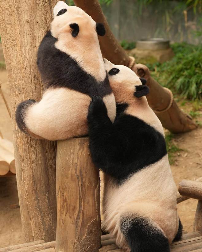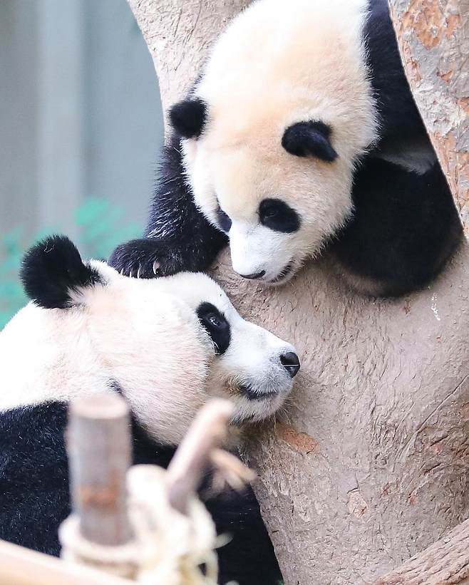 첫딸을 훌륭한 판다로 키워 독립시키고 이제는 두 쌍둥이를 사랑으로 돌보고 있는 아이바오. '바오걸즈 1기'의 애틋한 모습은 온라인 커뮤니티에서 "푸바오가 어디든 오르면 곁에 늘 아이바오가 있었다" 라는 제목의 글로 37,600회가 넘는 조회수, 450개가 넘는 덧글을 기록하며 많은 사람들을 울렸습니다.