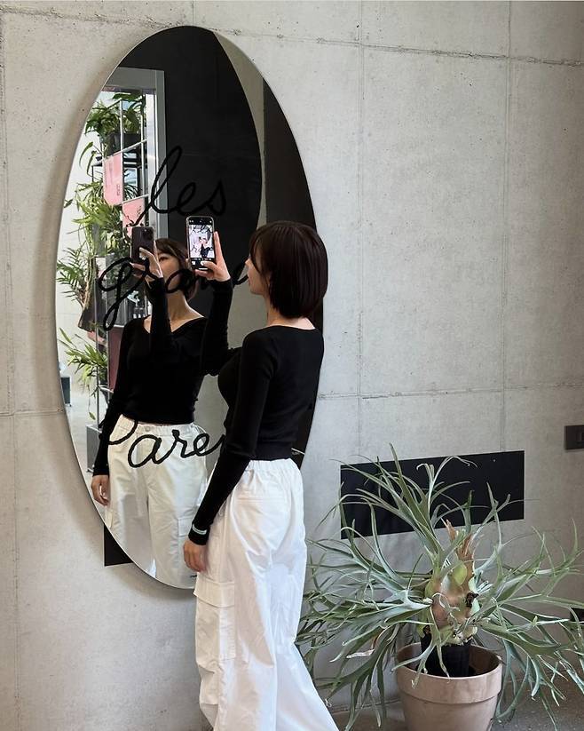 특히 허리를 자연스럽게 감싸는 톱은 그녀의 슬림한 라인을 강조했고, 와이드한 화이트 팬츠는 고원희 특유의 편안하면서도 세련된 아우라를 완성했습니다.