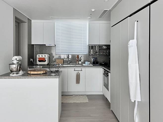 그 뒤로 소파를 배치했는데 좋아하는 노래를 들으며 주방에서 취미로 베이킹을 하고 있는 이구를 구경하면 참 재밌는 것 같아요.
