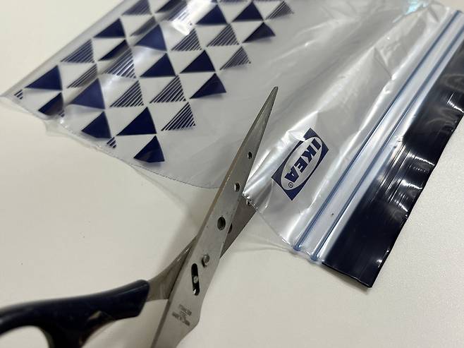 오래되거나 구멍 난 지퍼백은 지퍼락 부분만 잘라서 활용할 수 있습니다. 지퍼락은 웬만해선 망가지지 않기 때문이죠.