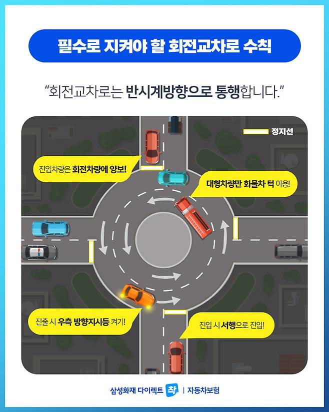 회전교차로에서의 올바른 통행 요령을 숙지하여 오늘도 안전운전되시길 바랍니다.