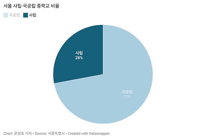 | ▲ 서울 시내 사립·국공립 중학교 비율(자료출처 : 서울시교육청 '2025년 상반기 학교별 일람표' |