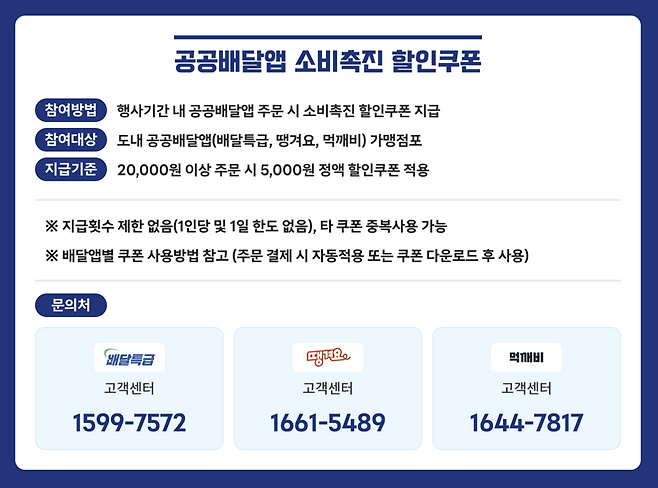 쿠폰은 행사 기간 동안 여러 번 사용할 수 있지만 각 배달앱 예산이 소진되면 조기 종료될 수 있습니다.