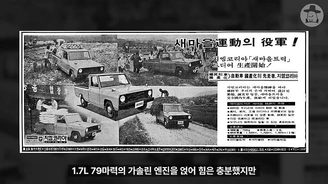 '새마을트럭'은 시보레 1700의 재고를 처리하기 위해 차고를 높이고 엔진과 변속기를 활용해 만든 소형 픽업으로, 차명은 누가 봐도 당시 정부가 추진했던 지역사회 개발운동 '새마을운동'을 의식해 지은 이름이었습니다.