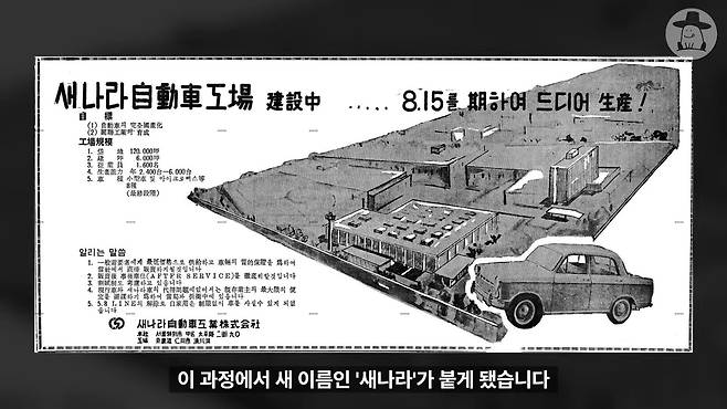 인천 부평에 둥지를 튼 새나라자동차는 일본 닛산과의 제휴를 통해 소형 세단 '블루버드'를 조립 생산해 판매했고, 이 과정에서 새 이름인 '새나라'가 붙게 됐습니다.