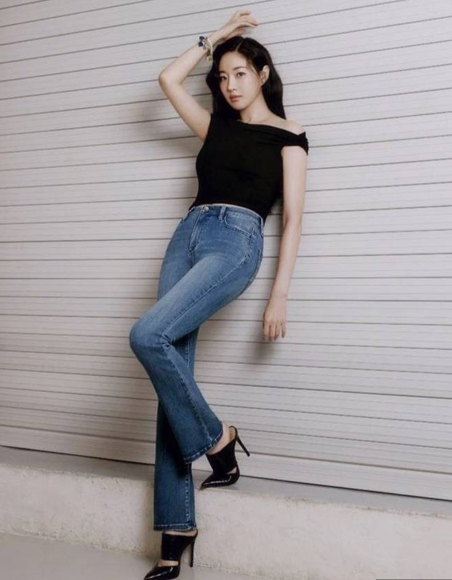 김사랑은 블랙 컬러 오프숄더 상의에 슬림핏 청바지를 입고 블랙 뮬을 매치해 고혹적인 자태를 뽐냈다.