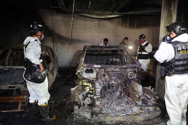 [M투데이 임헌섭 기자] 경찰이 최근 인천 서구 청라국제도시의 한 아파트 지하주차장에서 발생한 전기차 화재 사고와 관련해 강제 수사 나섰다.