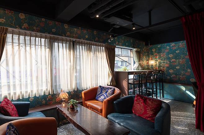 화려한 패턴의 벽면 구조와 눈길을 사로잡는 벽지는 방문객들을 1960년대 홍콩으로 데려가, 홍콩의 대표적인 영화가 그리는 섬세한 로맨스를 상기시킨다. 더불어 붉은빛을 포인트로 사용한 인테리어는 그 시대 홍콩에 대한 향수를 불러 일으킨다.