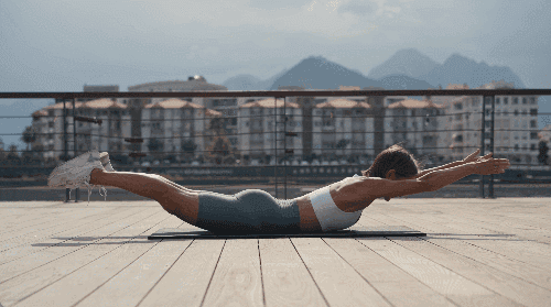 매트에 배를 대고 엎드린 상태에서 손을 앞으로, 발을 뒤로 길게 뻗습니다. 복부에 힘을 주며 상체와 하체를 동시에 공중으로 들어 올립니다. 손끝과 발끝을 최대한 멀리 뻗은 상태로 자세를 유지한 뒤, 천천히 원래 자세로 돌아옵니다.