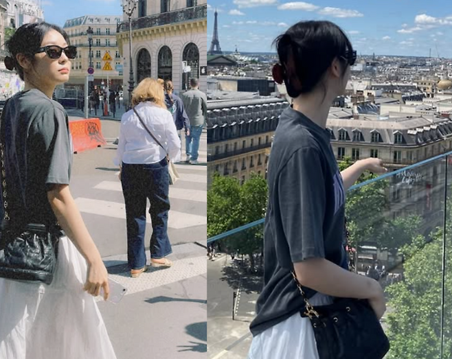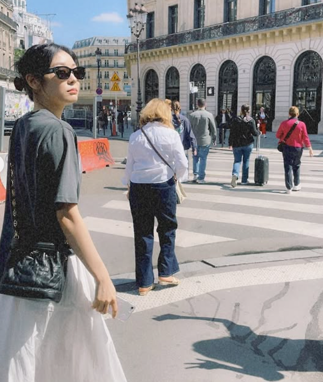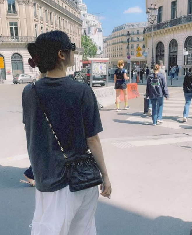 가방 역시 실용성과 스타일을 모두 갖춘 블랙 미니백을 선택해 심플하면서도 안정감 있는 마무리를 보여줬답니다. 작은 디테일 하나하나가 전체 룩을 균형감 있게 완성시켰죠.