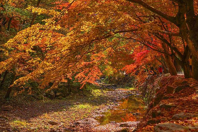 주변 다른 계곡보다 덜 알려져 한적하게 가을 정취를 만끽할 수 있고, 조용한 트래킹을 즐기기에 적합한 장소입니다.