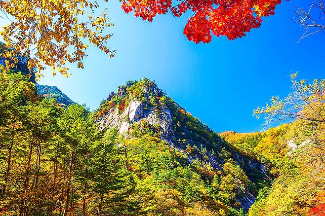 기암절벽과 단풍이 어우러져 황홀한 자연의 경이로움을 누릴 수 있습니다.