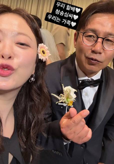 이날 결혼식에는 친척 고모인 배우 심혜진을 비롯해 전 축구 국가대표 이천수, 개그맨 김태균, 문세윤, 김원효·심진화 부부 등 연예계 동료들이 참석했다.
