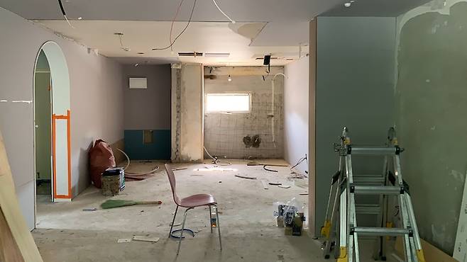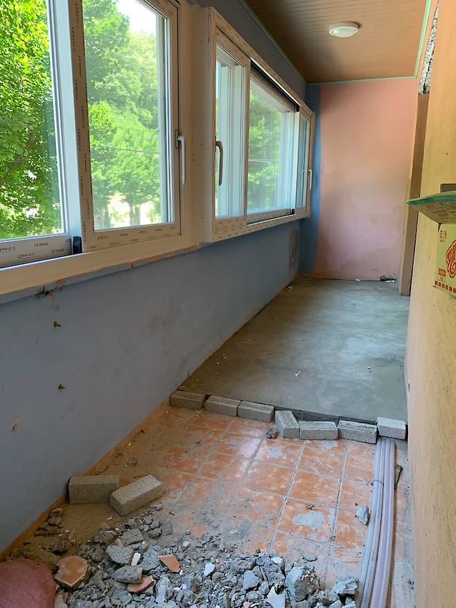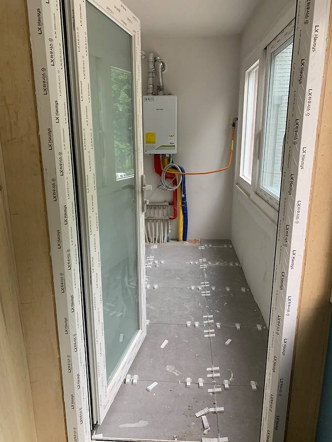 저희 집 거실은 양쪽에 내력벽이 있는 구조여서 건들지 못하기 때문에 확장을 해도 크게 공간감을 느낄수 없을 것 같았지만 안하는 것 보단 나을 것 같아 베란다 쪽을 거실로 쓸 수 있게 확장 진행했어요.