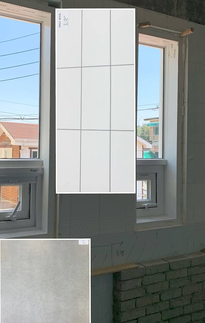 벽과 바닥을 어떤 색, 사이즈로 할지 고민을 참 많이 했어요. 아이가 자주 쓸 욕실이라서 귀여운 느낌이 나면서도 흔하지 않게 꾸미고 싶었거든요.